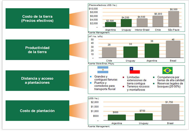 Argentina se caracteriza por ser uno de los países del mundo con mayor potencial forestal, por su gran disponibilidad de tierras y por sus óptimas condiciones de clima y suelo. Particularmente la región mesopotámica se caracteriza por poseer, junto con Brasil, las mejores tierras del mundo para forestación. Sumado a esto el precio de la tierra en Argentina, para comprar y arrendar, es mucho menor que en países limítrofes como Uruguay y Brasil.