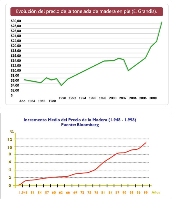 Si se analiza el comportamiento histórico de los precios de la madera se ve claramente que existe, a nivel internacional, una tendencia de crecimiento permanente, afianzada por una brecha cada vez mayor entre la oferta y la demanda.